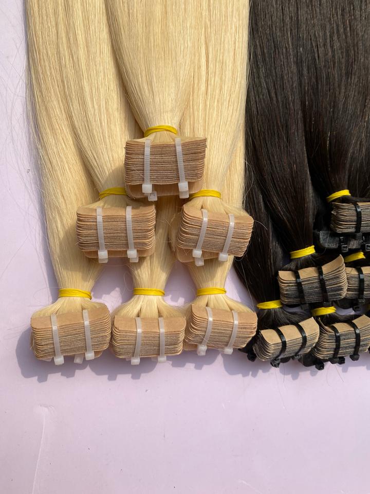Extensiones de cabello humano vietnamita alineado con cutícula sin costuras al por mayor, cinta inyectada, estilos de rizos italianos de ondas naturales profundas sueltas