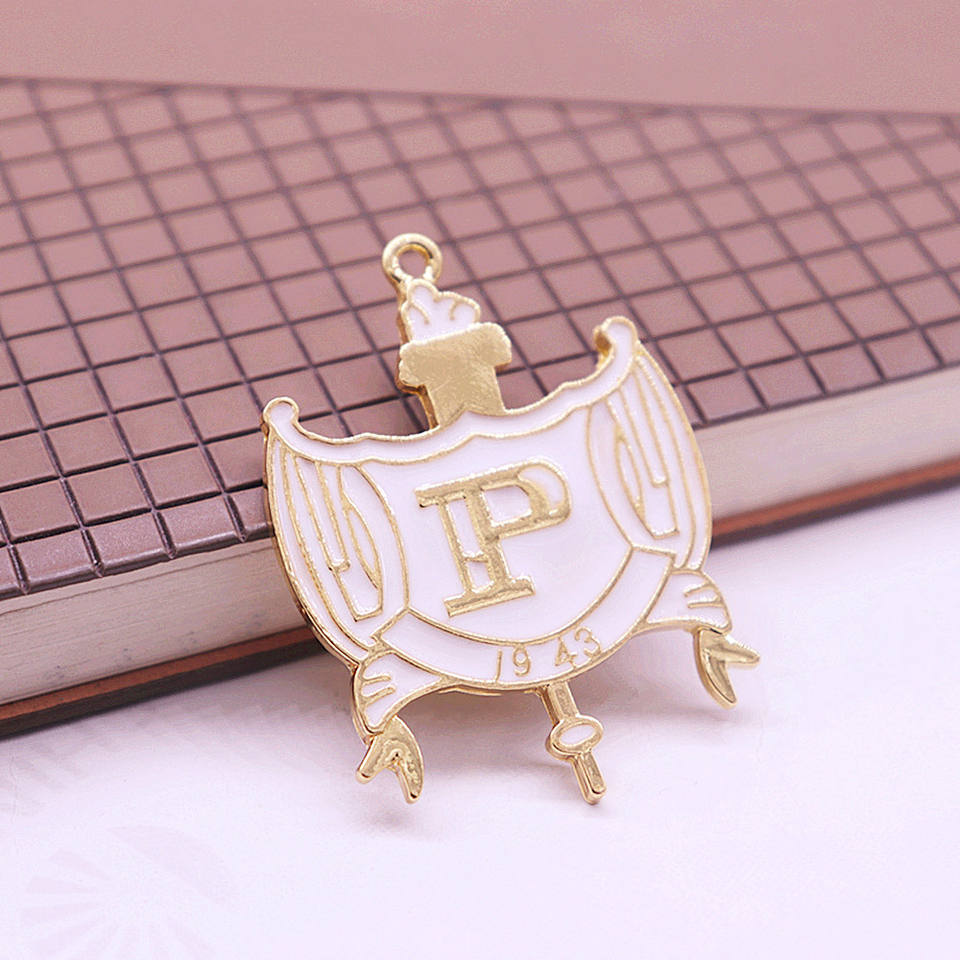 Venta al por mayor Sigma Gamma Rho Capítulo Símbolo Blanco Esmaltado Tono Dorado Hermandad Philo Crest Joyería Fabricación Accesorio Colgante