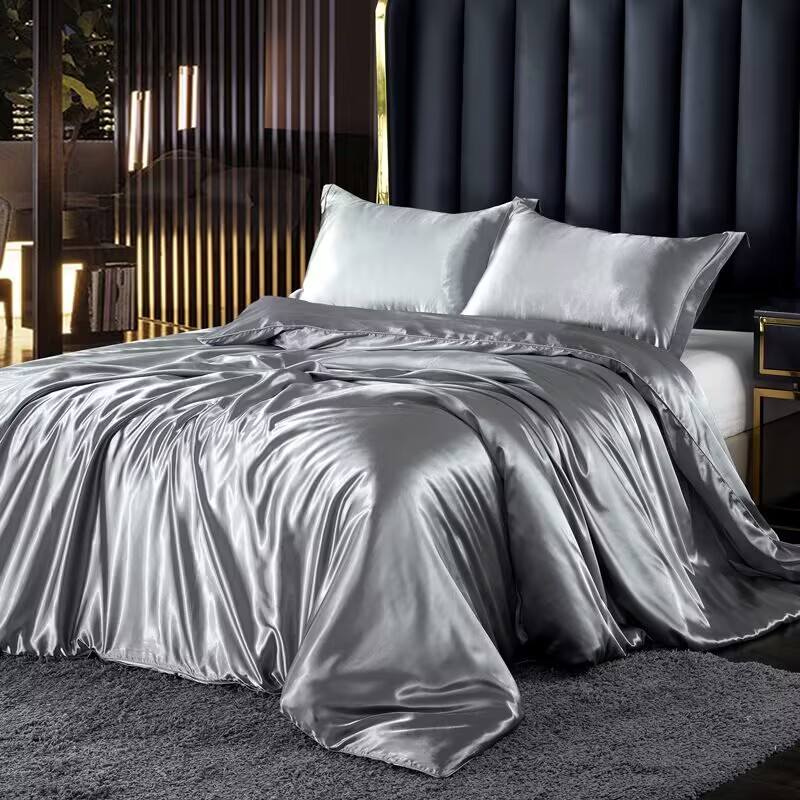 Venta al por mayor juegos de cama de seda de alta calidad de satén europeo de color sólido sábanas de satén juego de edredón