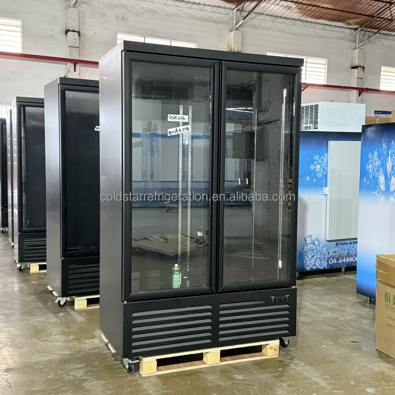 Venta al por mayor de una sola temperatura vertical de bebidas y helados Pantalla Congelador Nevera con 2 puertas de vidrio