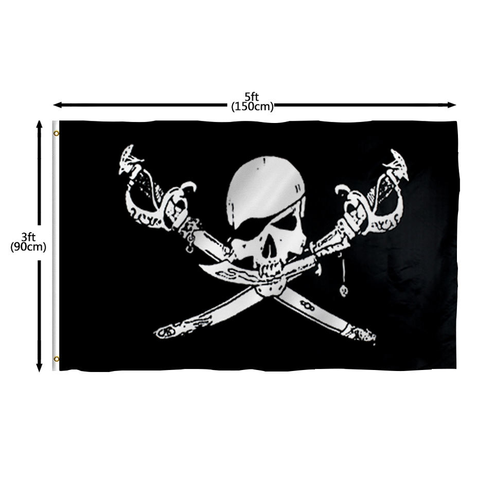 Wholesale custom design silk screen printing Jolly Roger flag 100% polyester outdoor flying 3*5FT pirate flag with two grommets
