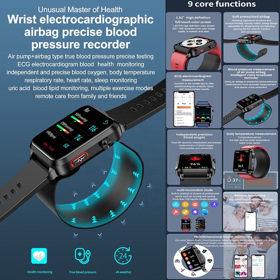 Característica:Bomba de aire + bolsa de aire tipo verdadera presión arterial salud reloj inteligente