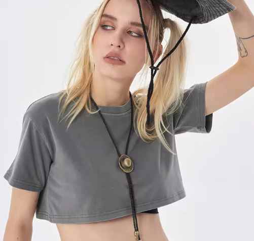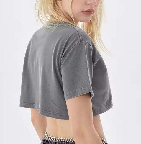 Venta al por mayor de algodón suave lavado a la piedra Camiseta corta de las mujeres de tamaño personalizado Crop Top camisetas para la impresión