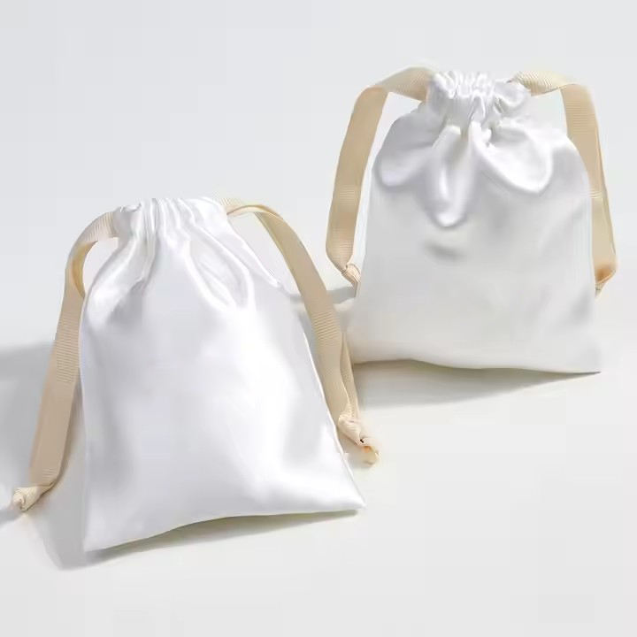 Al por mayor suave personalizado elegante caja de papel interior satén bolsa bolsas con logotipo de impresión sombrero cuidado de la piel para el pelo