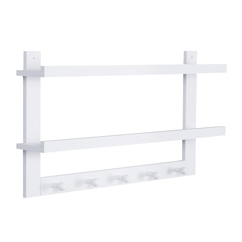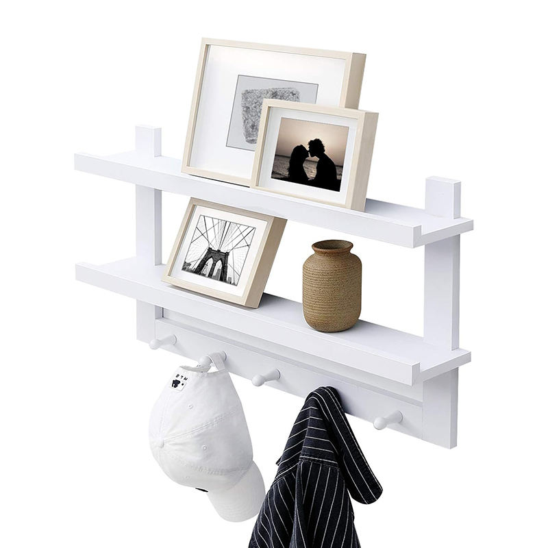 Madera maciza 2 niveles entrada flotante estante de la pared