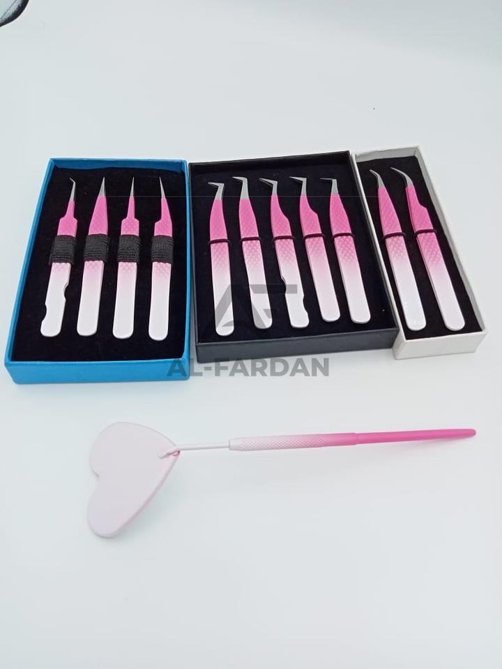Venta al por mayor de acero inoxidable sólido de color degradado pinzas para pestañas logotipo personalizado Rosa Blanco tono punta puntiaguda pinzas para extensión de pestañas