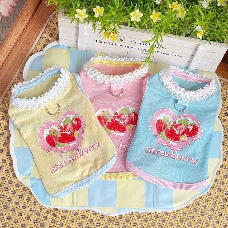 Chaleco Arnés para Perro con Volantes de Encaje de Fresa Dulce de Primavera al por Mayor - Top para Mascotas de Diseño Japonés y Coreano para Razas Pequeñas