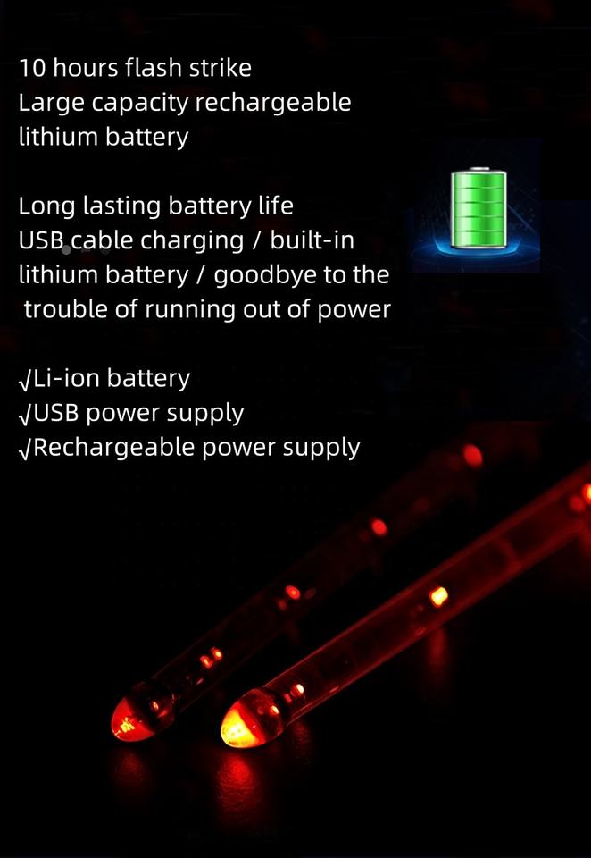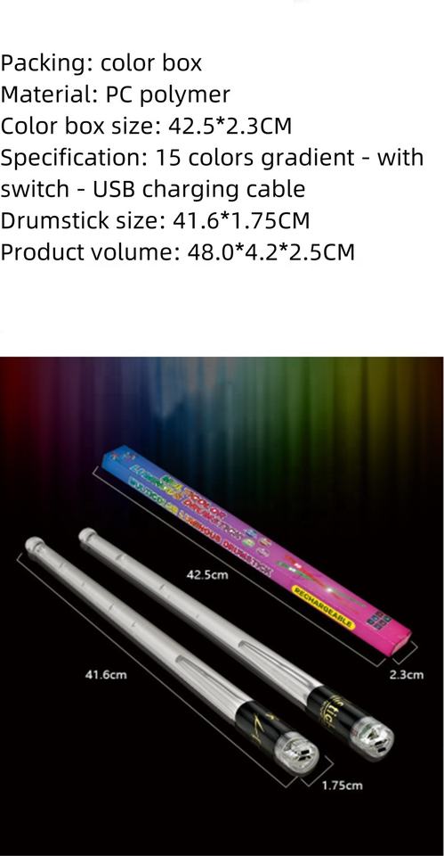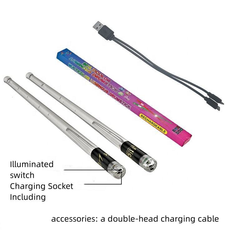 Venta al por mayor puesta en escena USB recargable con interruptor 15 colores gradiente LED emisor de luz baquetas