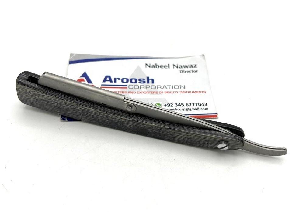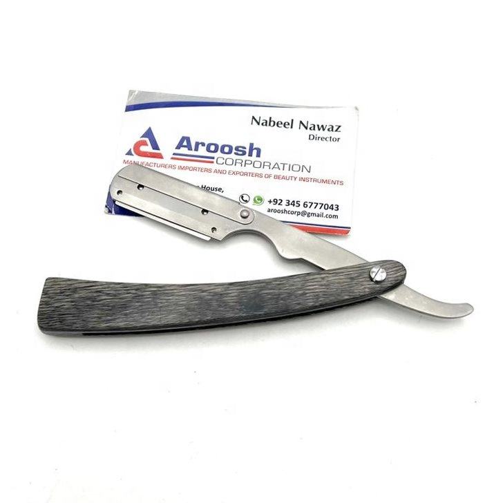 Venta al por mayor de maquinilla de afeitar profesional de barbero mango de madera Pakka con acabado de arena hoja expuesta maquinillas de afeitar de barbero sostenible