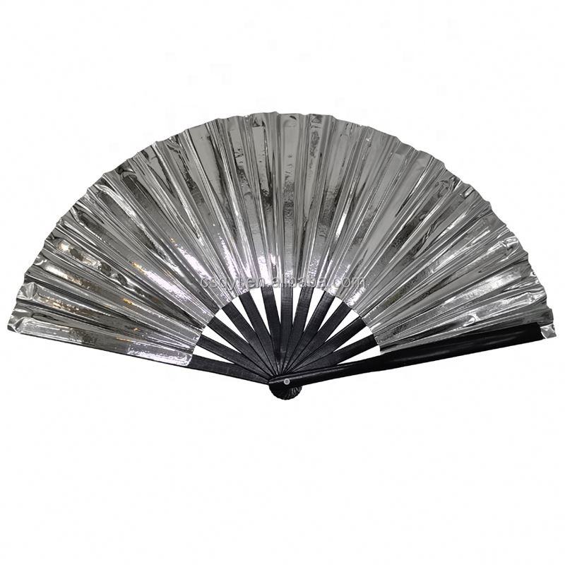 Venta al por mayor de 13 pulgadas de arte popular Kong Fu Fan Venta caliente costilla PVC tela impresa blanco negro Mango de bambú pintado regalos promocionales