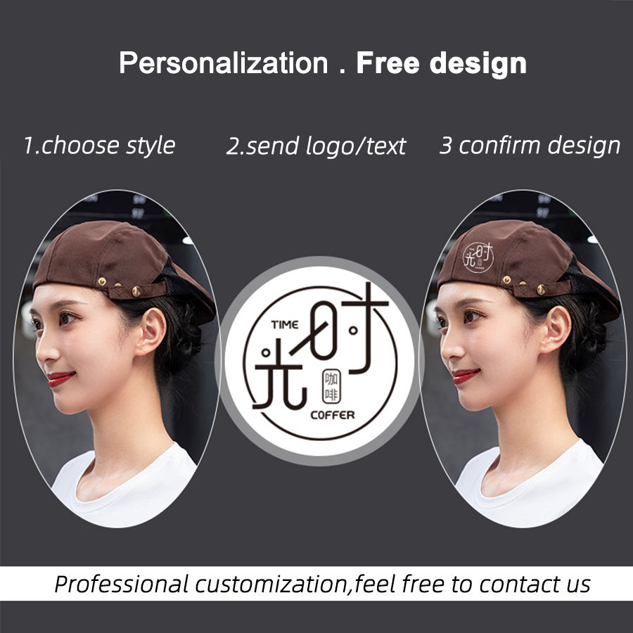 Venta al por mayor a rayas 100% poliéster todas las estaciones boina sombreros de Chef para cocina camarero camarera ropa de trabajo elástico adultos logotipo personalizado