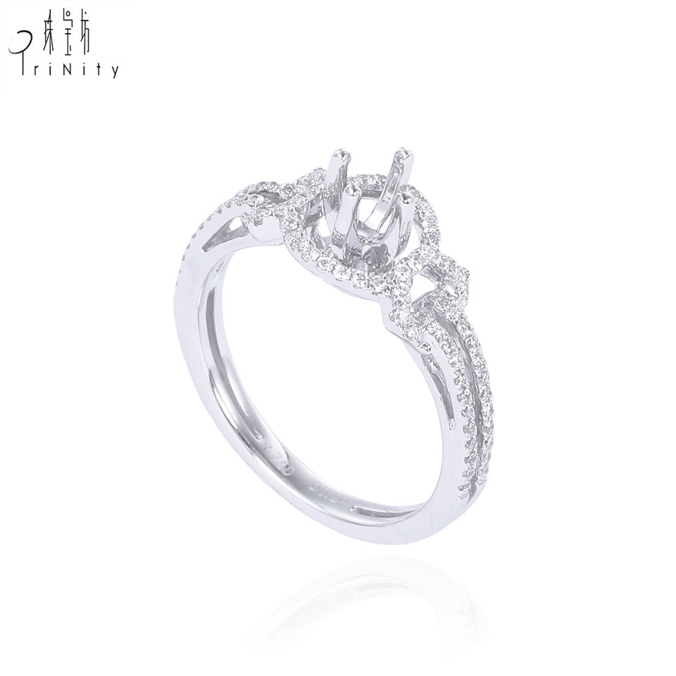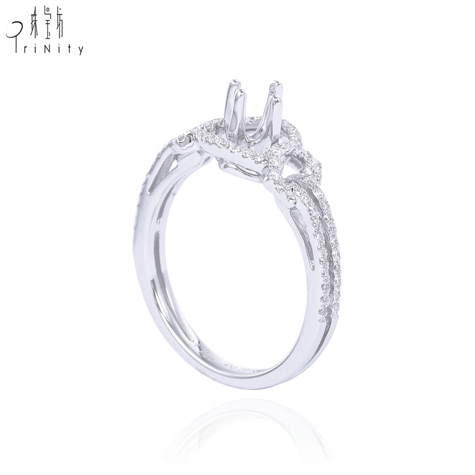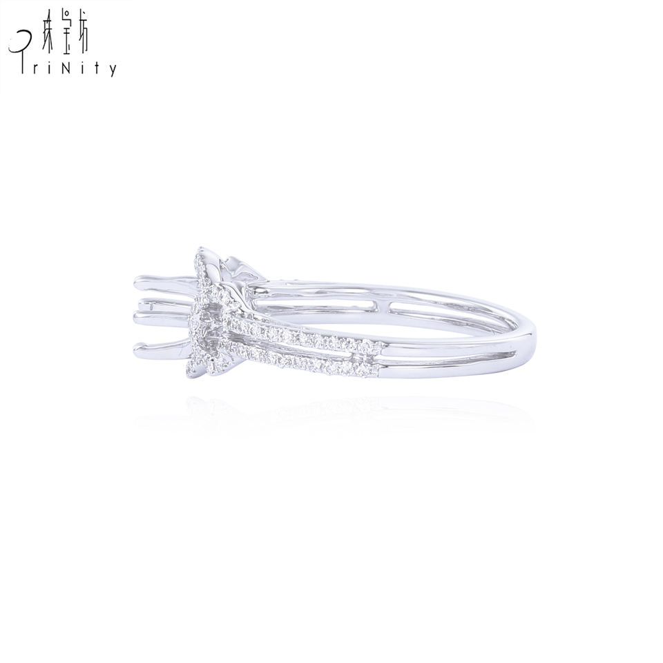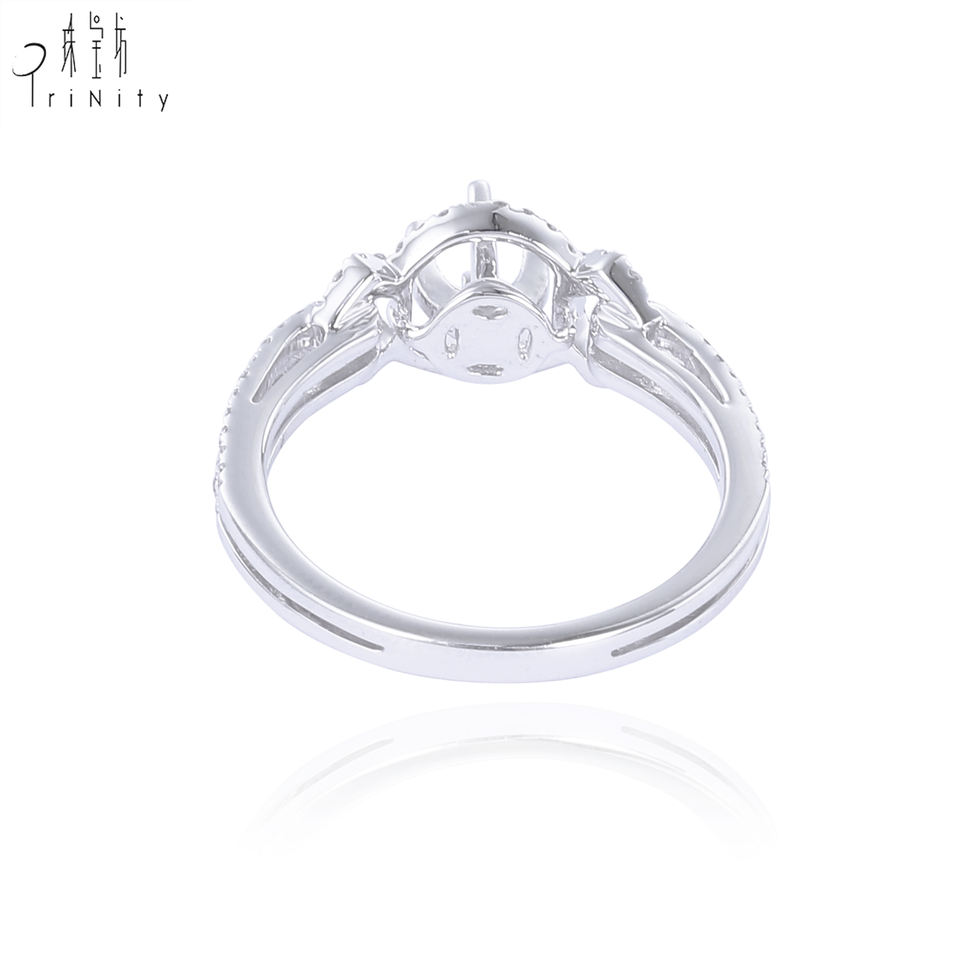 Nombre:Anillo de compromiso de diamantes de oro blanco sin piedra central