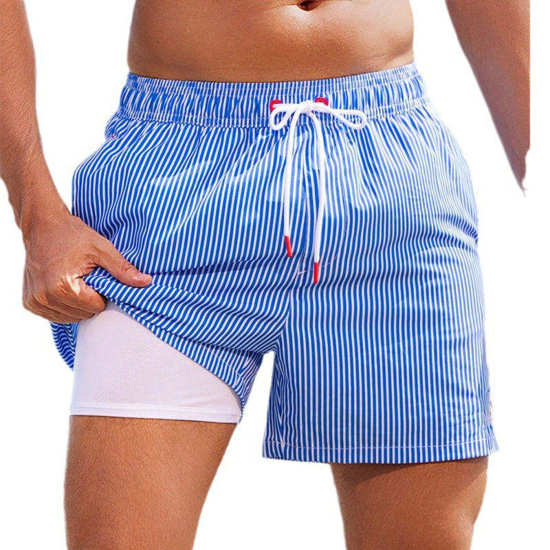Venta al por mayor de bañadores de los hombres de marca de rayas Sexy de poliéster de nailon transpirable bañadores pantalones cortos de natación de los hombres