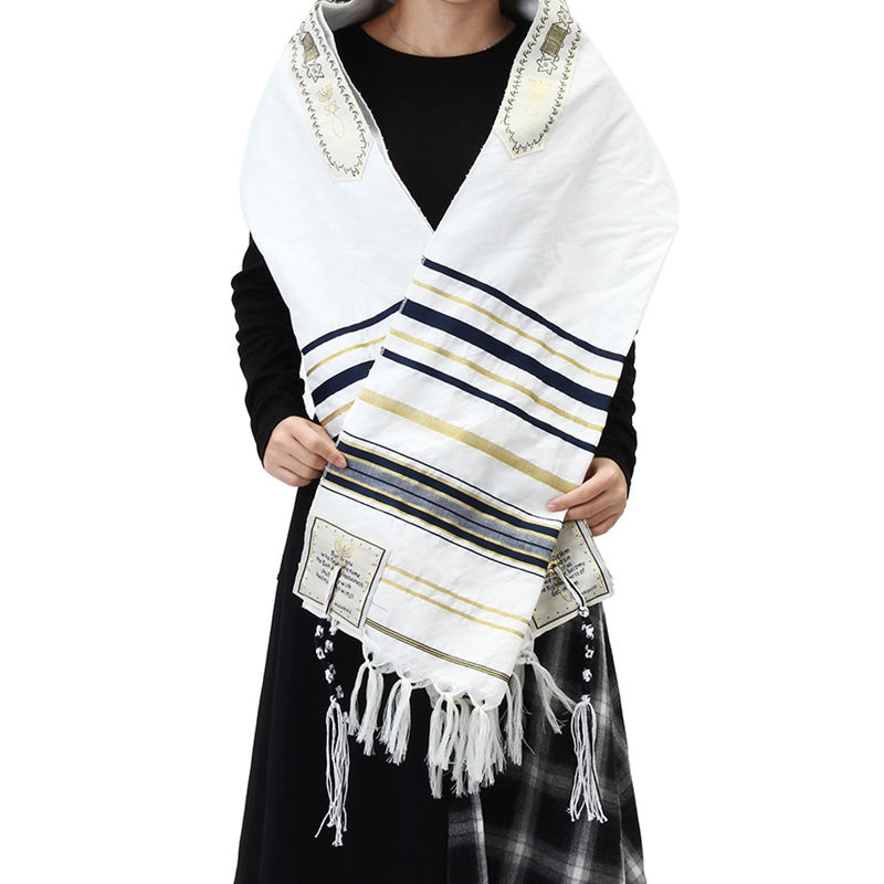 Venta al por mayor Talit chal de oración judío para hombres mesiánico Tallit bufanda de oración chal negro para hombres mesiánico