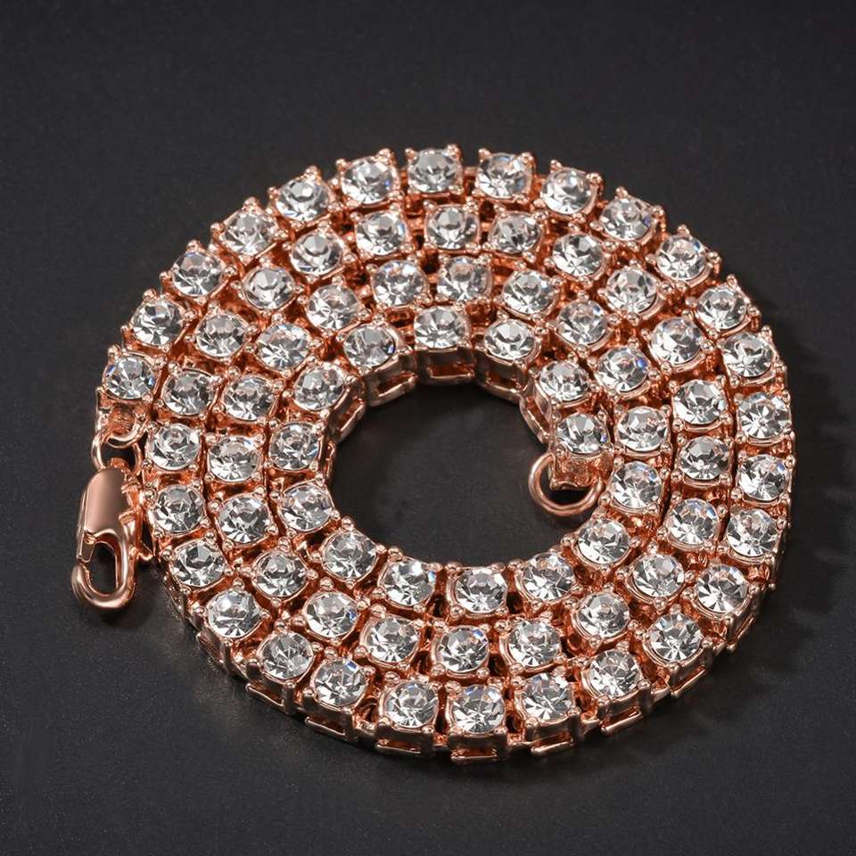 Collar de tenis al por mayor con diamantes de imitación negros, chapado en oro, bajo MOQ, joyería hip hop para hombre