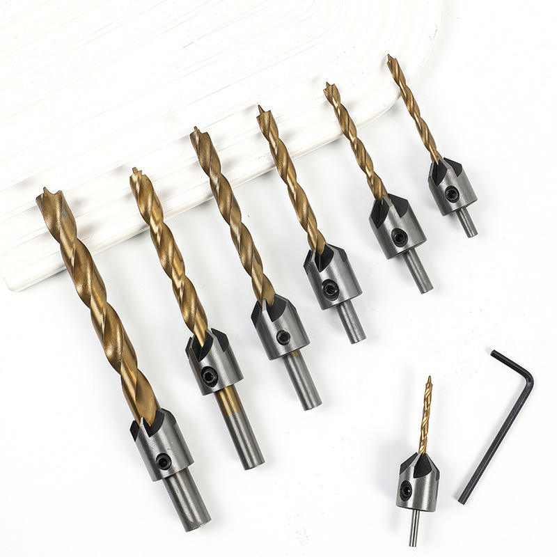 Juego de brocas avellanadoras de tres puntas para carpintería, abridor y ensanchador de orificios para tornillos, ideal para proyectos de carpintería.