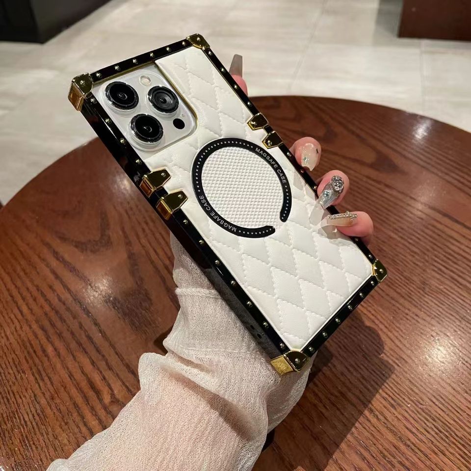 Nombre:Cuadrado diamante enrejado pu cuero para teléfono magnético caso