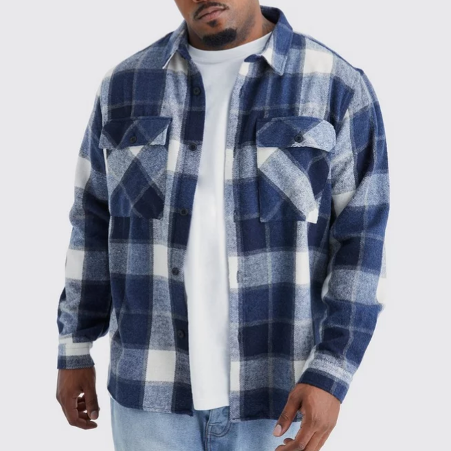 Camisa de Franela de Algodón 100% de Alta Calidad al por Mayor, Personalizable, Informal, Holgada, Talla Grande, a Cuadros, para Hombre