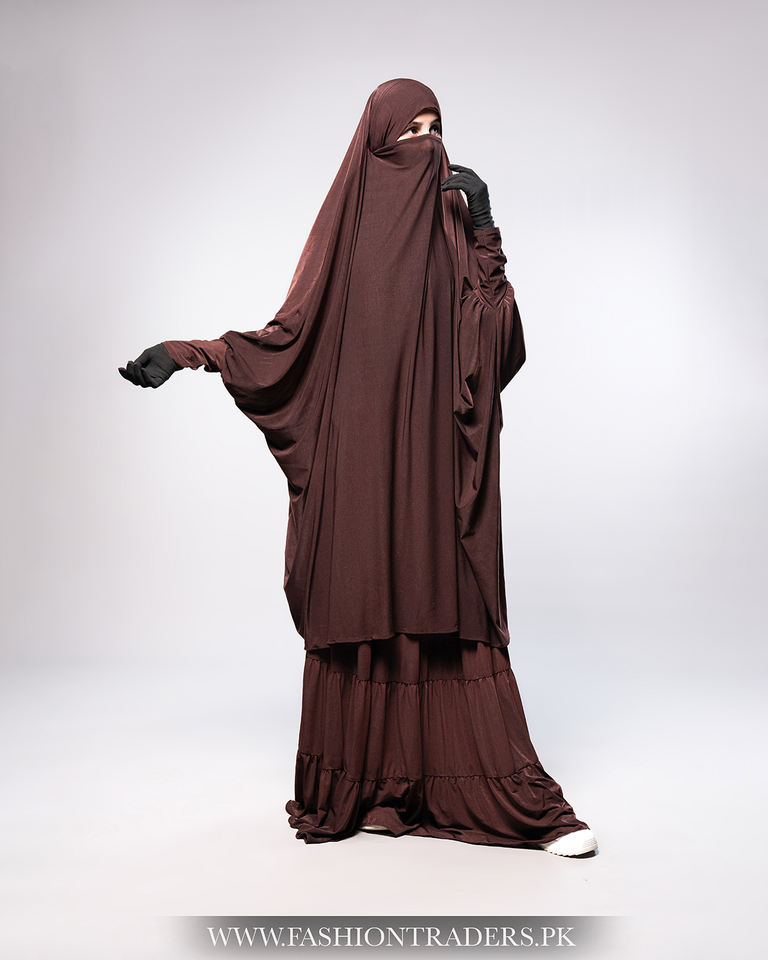 Two Piece Jersey Sleeves Jilbab With Ruffle Skirt