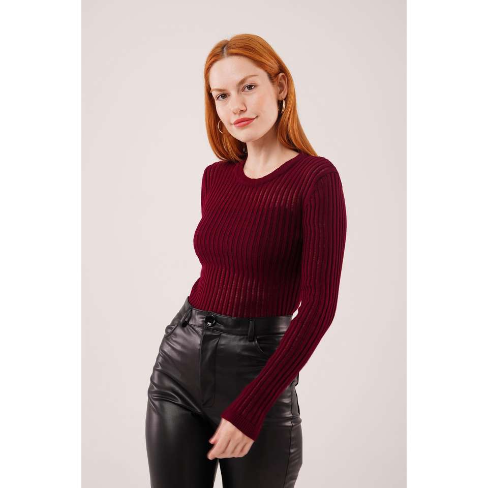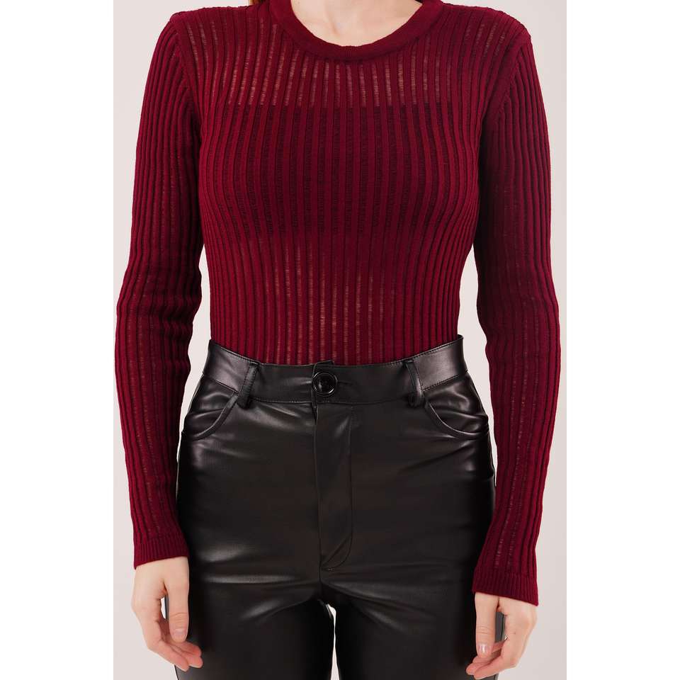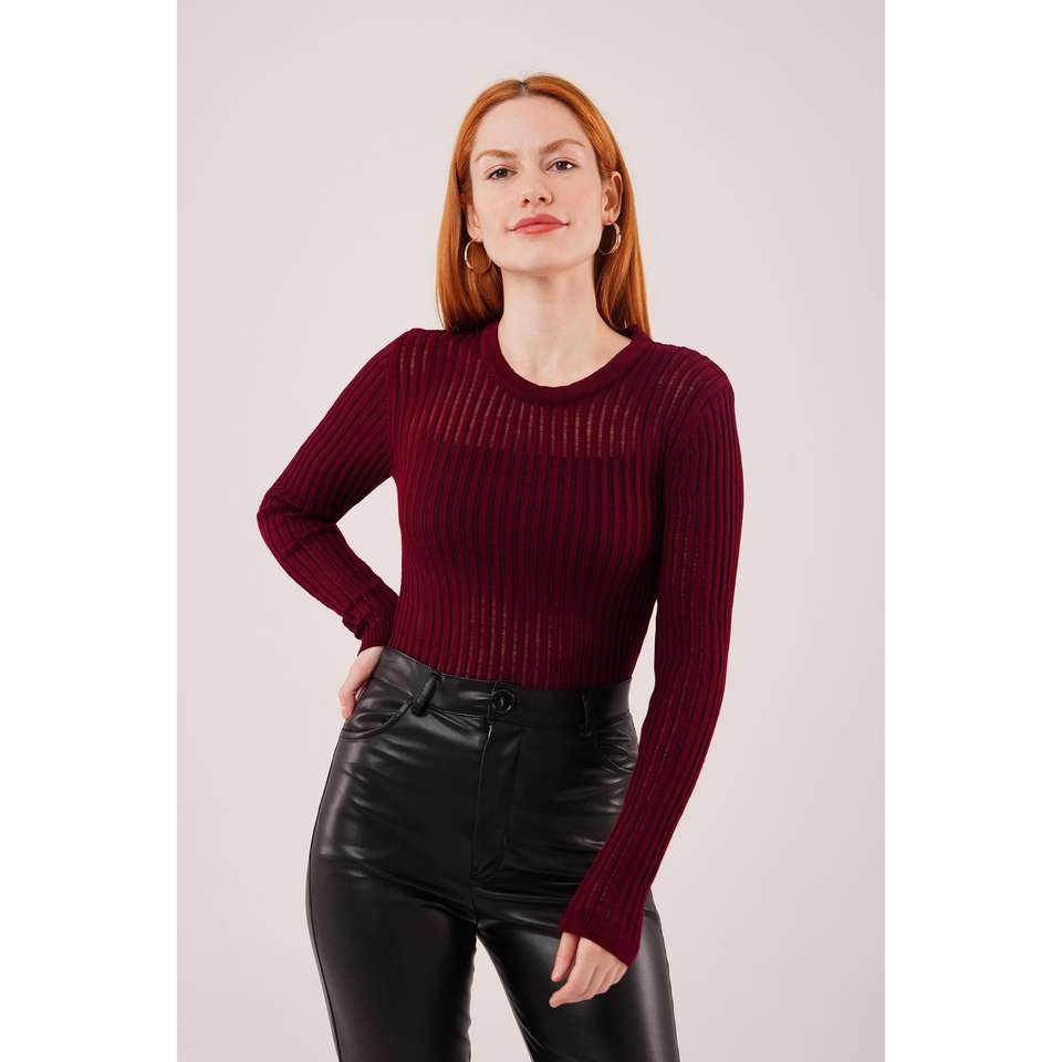 Blusa Roja Transparente de Manga Larga al por Mayor para Mujer, Tops de Punto