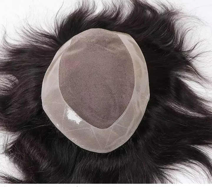 Tupé Mono Duro Largo y Liso con Base de Encaje Transparente al por Mayor para Hombres con Peluca de Cabello Humano Real