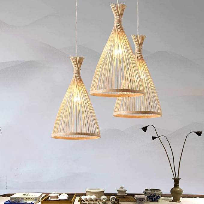 Lámpara Colgante Triangular de Ratán al por Mayor, Pantalla Tejida a Mano, Cable Ajustable, E27, para Decoración de Balcón y Pasillo, OEM ODM