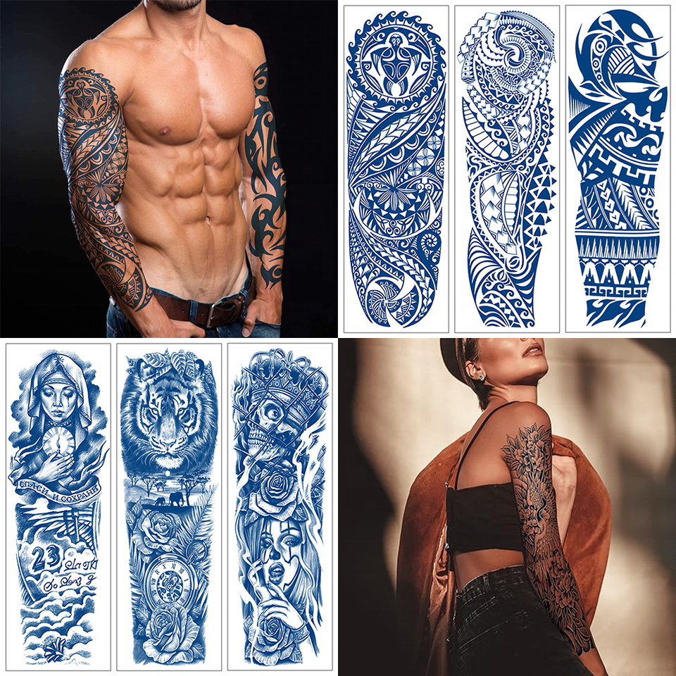 Tatuaje Temporal Semipermanente con Diseño Tribal en Papel, Venta al Por Mayor | Tinta de Tatuaje Impermeable y No Tóxica para Brazo Completo y Cuerpo, Dura 2 Semanas