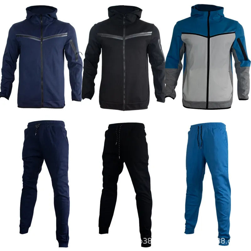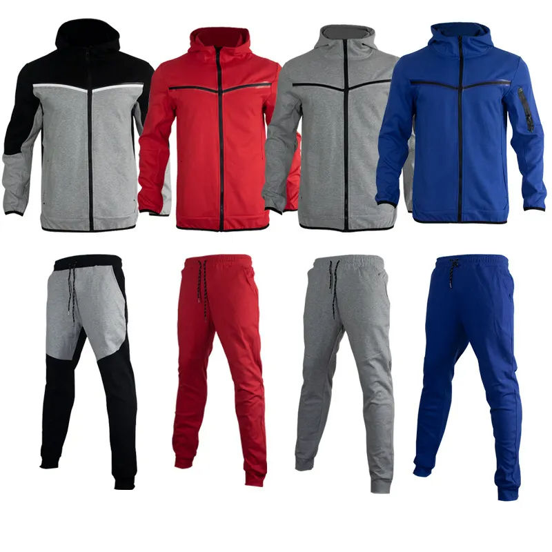 Venta al por mayor de dos piezas Color Block Chándal Hombres Chaqueta Traje Slim Fit chándal conjuntos unisex