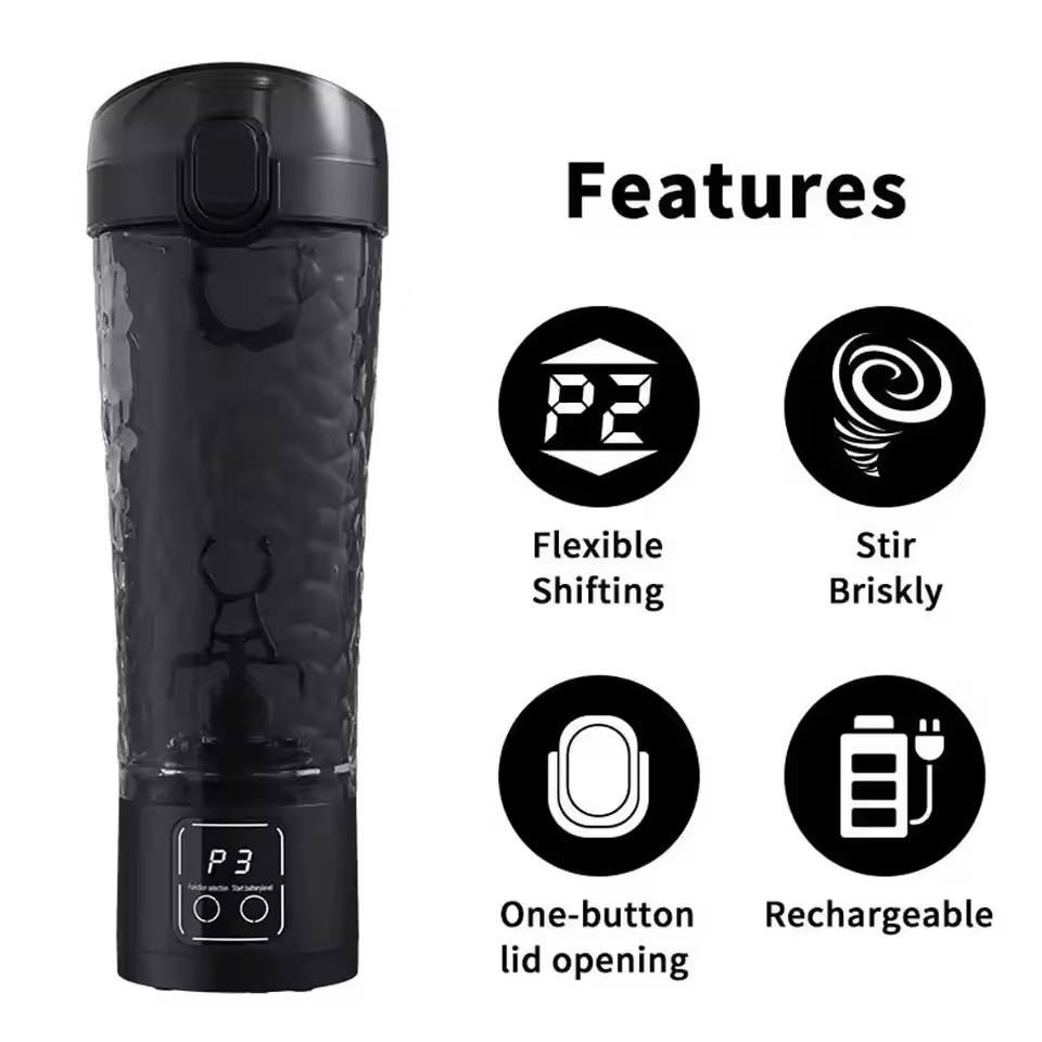 Vaso Mezclador de Proteínas con Alimentación USB, Botella Mezcladora Automática, Batidora Deportiva para Leche y Café