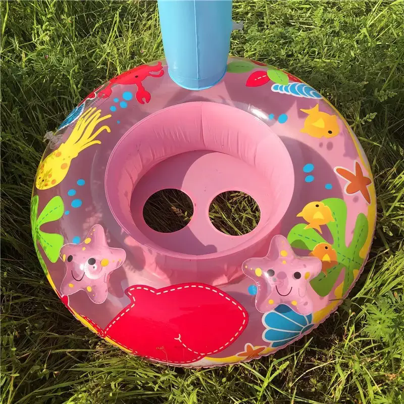 Venta al por mayor paraguas natación anillo inflable bebé natación barco Pvc inflable bebé flotador asiento anillo con dosel