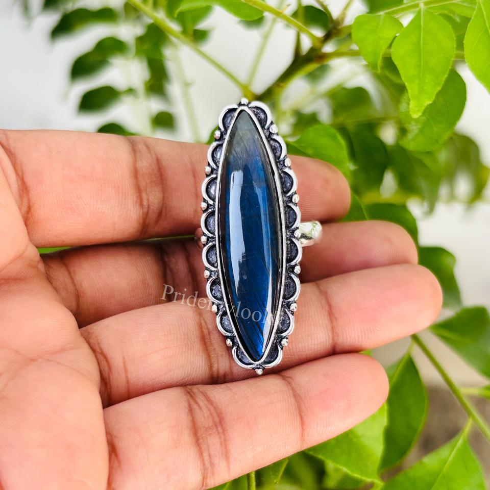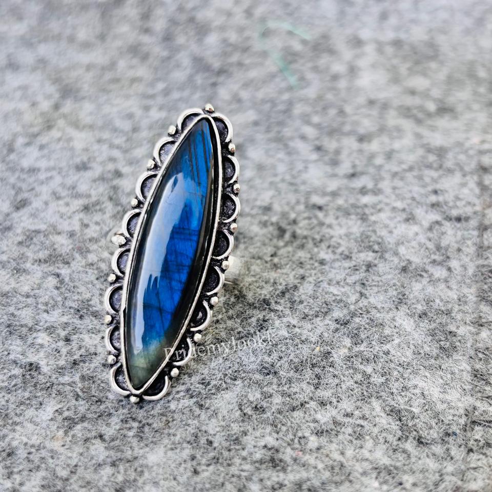 Anillos de Labradorita Azul Facetada de Estilo Religioso Único al por Mayor, Piedras Preciosas a Granel para Bodas, Compromisos, Fiestas, Regalos, Hechos de Latón