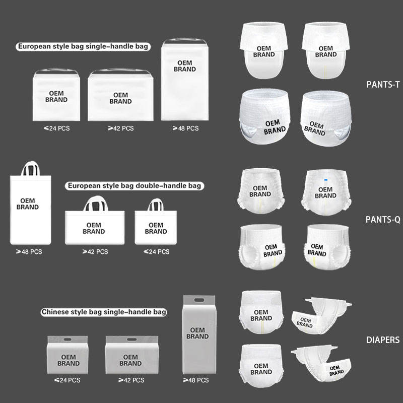 Nombre del producto:pañal desechable para adultos, tambaleo, absorbe el castigo respaldado a granel