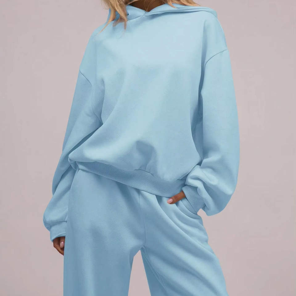 Conjunto Deportivo de Moda para Mujer al por Mayor, Sudadera Corta Holgada y Pantalones Jogger, Ropa Deportiva Cómoda de Invierno, Color Sólido, Logotipo Personalizado