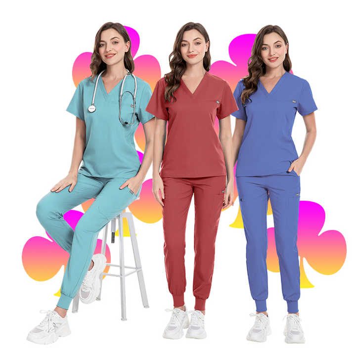 Uniforme de enfermería con cuello en V al por mayor, uniformes de hospital, conjuntos de uniformes médicos, conjunto de uniforme de enfermería unisex