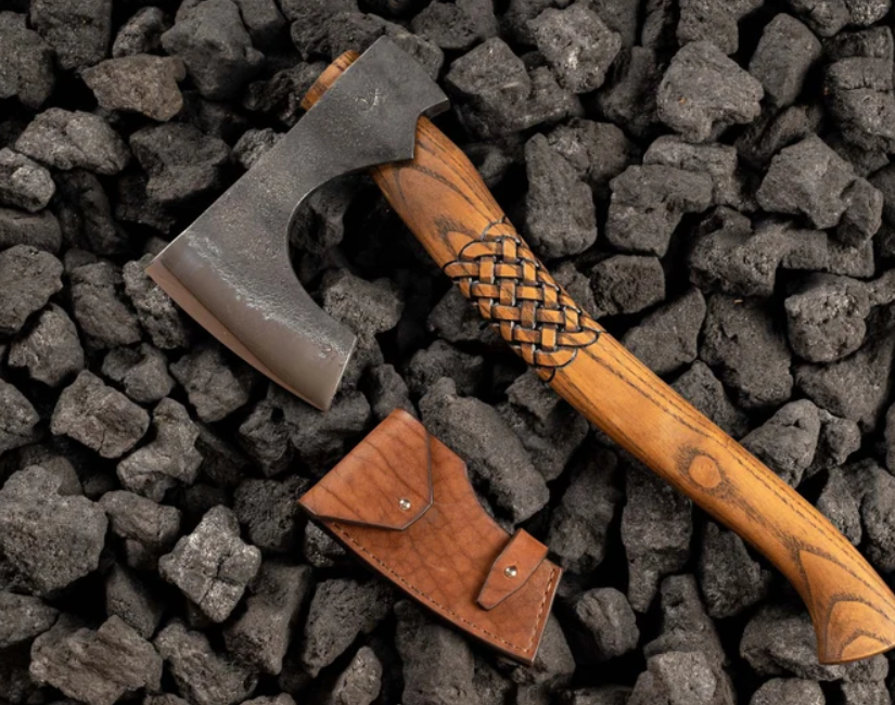Hacha de cuero negro envuelto