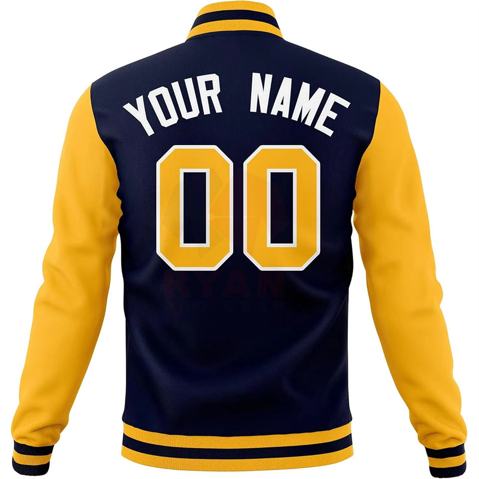 Chaqueta Varsity para Hombre al por Mayor, con Botones y Cremallera, Cuello Mao, Resistente al Viento, Ecológica, Estilo Retro Otoñal, Lavada, con Combinación de Colores Personalizada