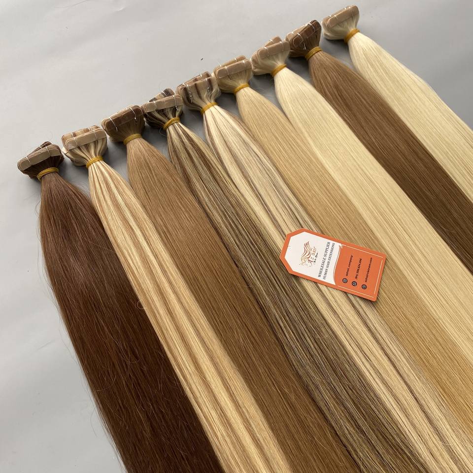 Extensiones de Cabello Humano Vietnamita Remy al por Mayor, Extensiones de Cabello Humano con Cinta Adhesiva de Doble Trama