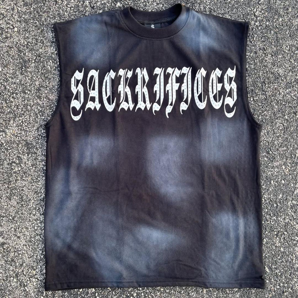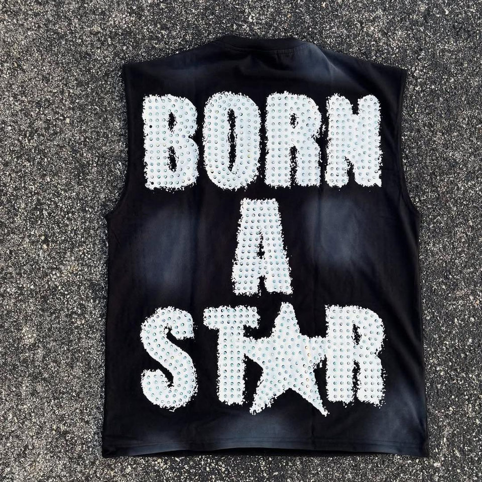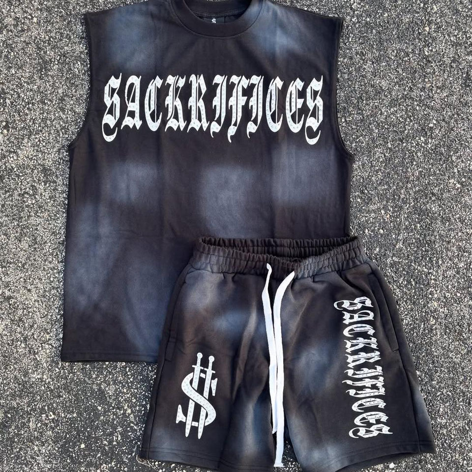 Venta al por mayor Vintage Acid Wash Serigrafía Chaleco Rhinestone hombres Short Street Style chándal en blanco para hombres