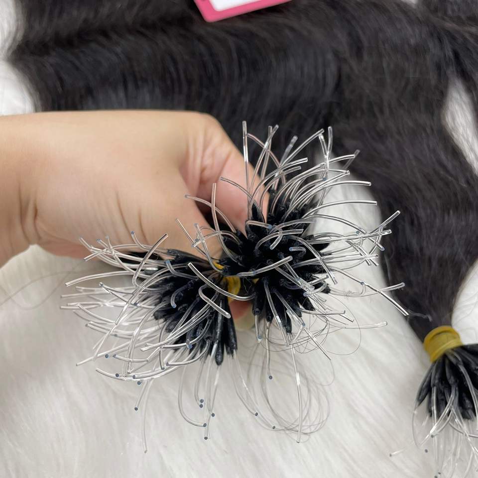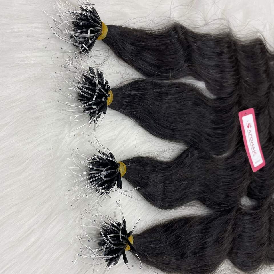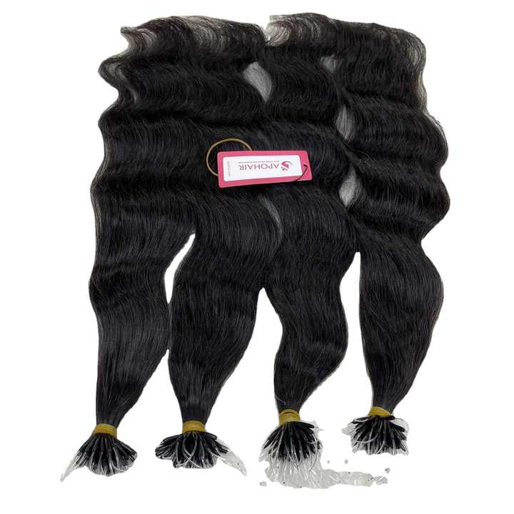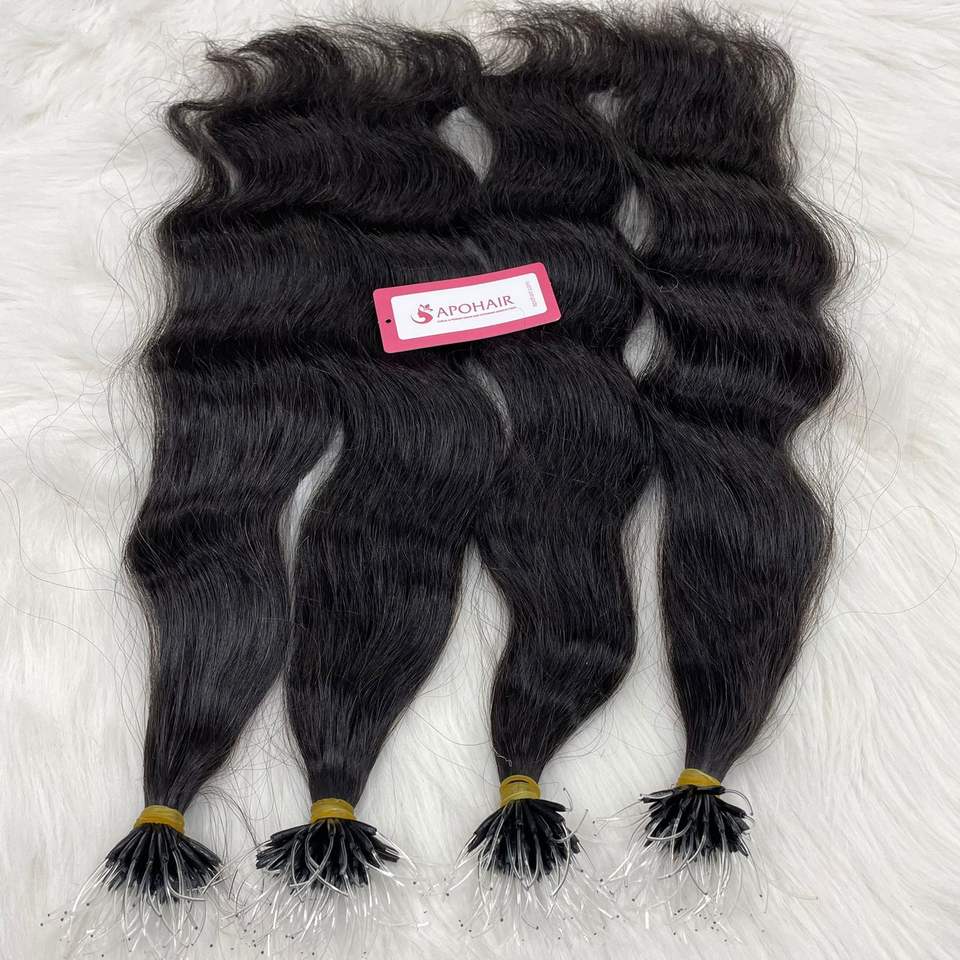 Venta al por mayor Virgen Remy Negro Nano Plástico Anillo Extensiones de Cabello Humano Ondulado Natural Trama