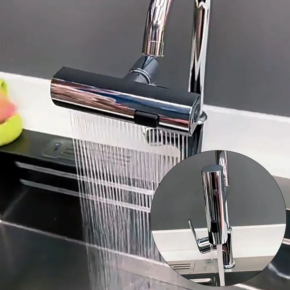 Dispositivo Antisalpicaduras Giratorio para Grifo de Cocina, Diseño Moderno en Cascada, Extensor de Burbujas, Conexión Universal