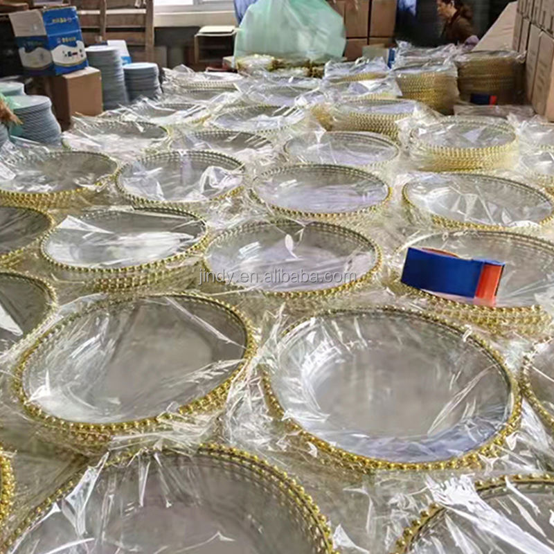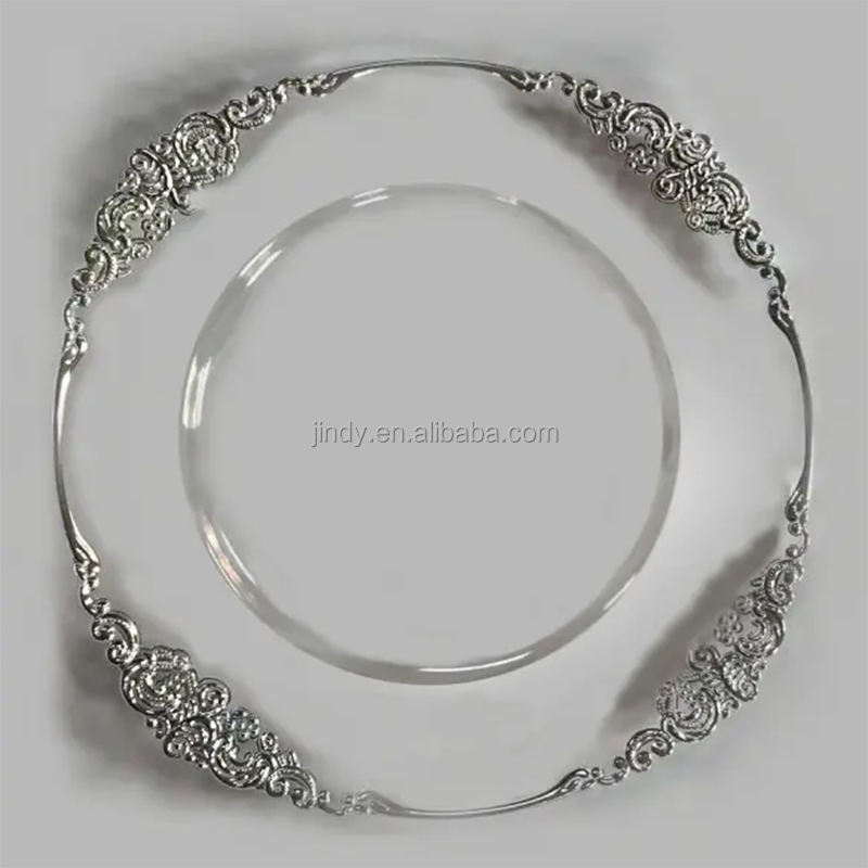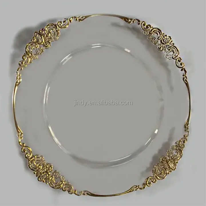 Platos Base Redondos de Plástico con Borde Dorado para Bodas, Platos de Presentación con Ribete Plateado, Venta al por Mayor
