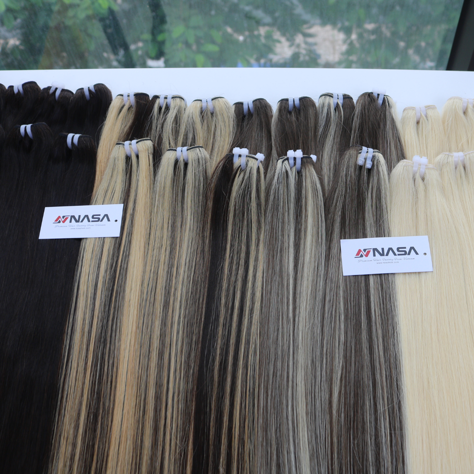 Venta al por mayor de trama virgen súper doble dibujado largo recto vietnamita pelo crudo Negro Blanco marrón claro color oscuro