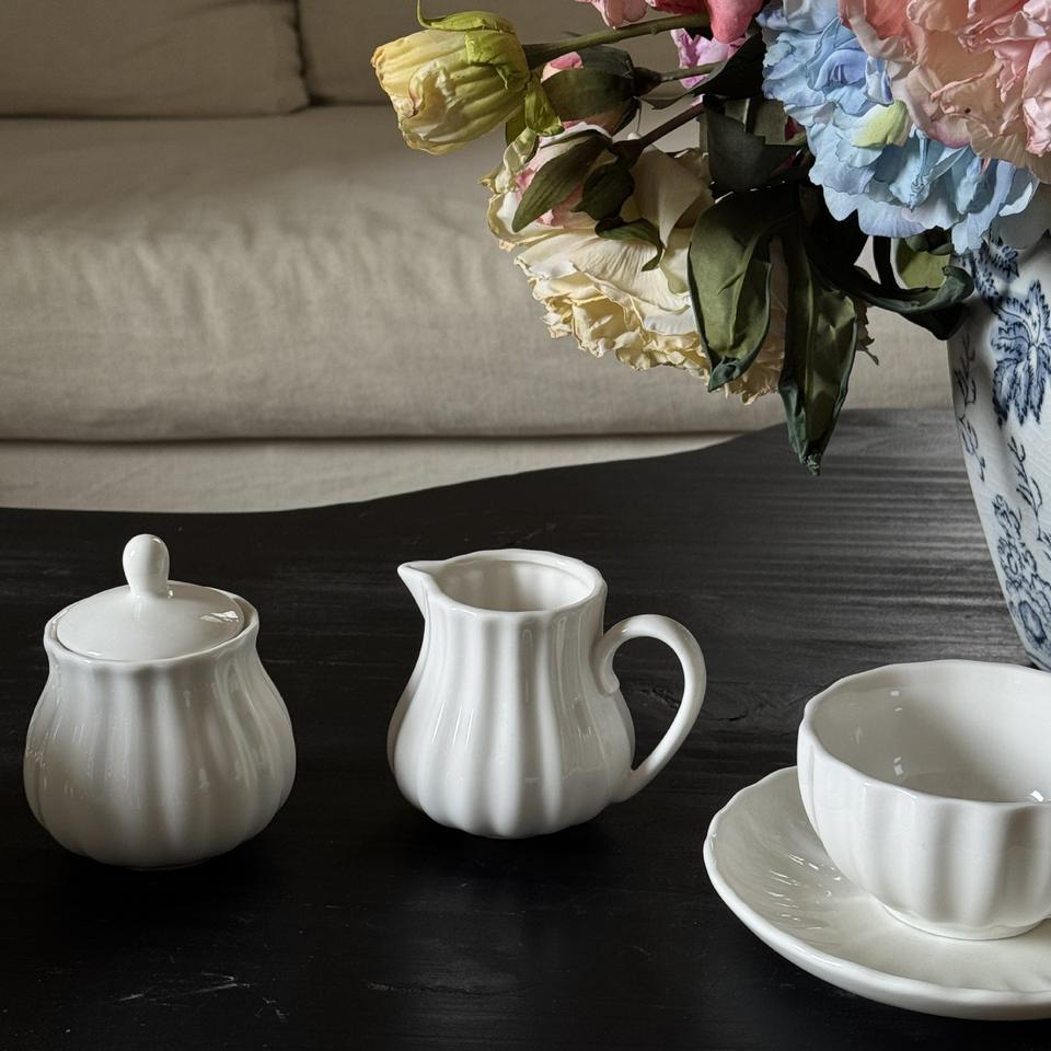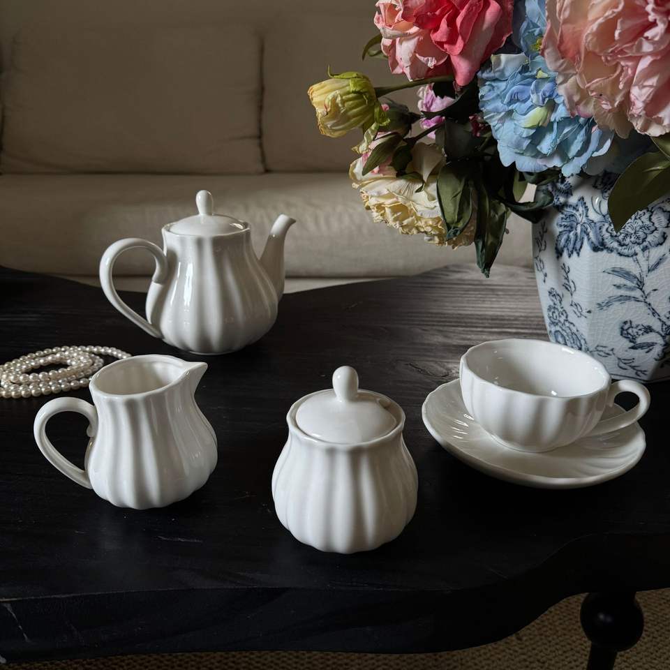 Juego de Té de Cerámica Blanca al por Mayor, Jarra para Leche y Crema, Taza y Platillo de Porcelana para Café, Juego de Té para la Tarde