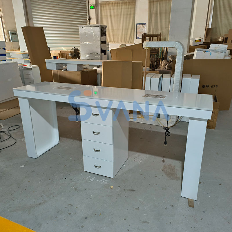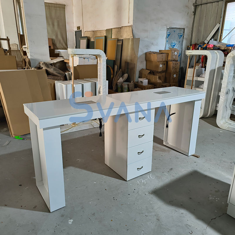 Venta al por mayor muebles de salón de uñas blancas MESA DE MANICURA moderna superior de mármol con colector de polvo