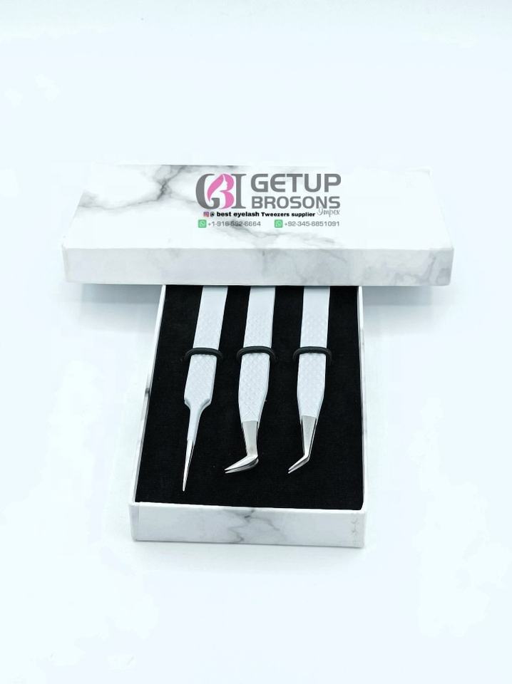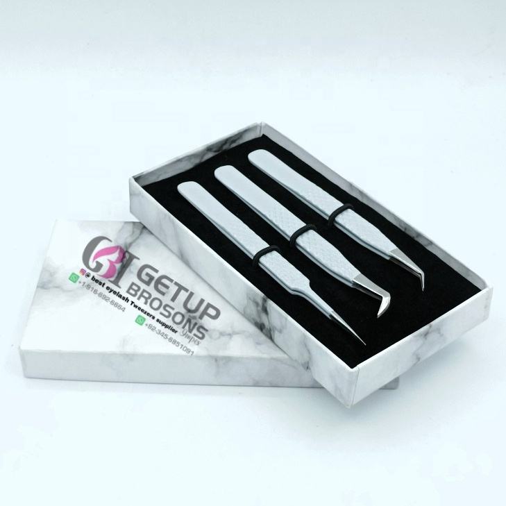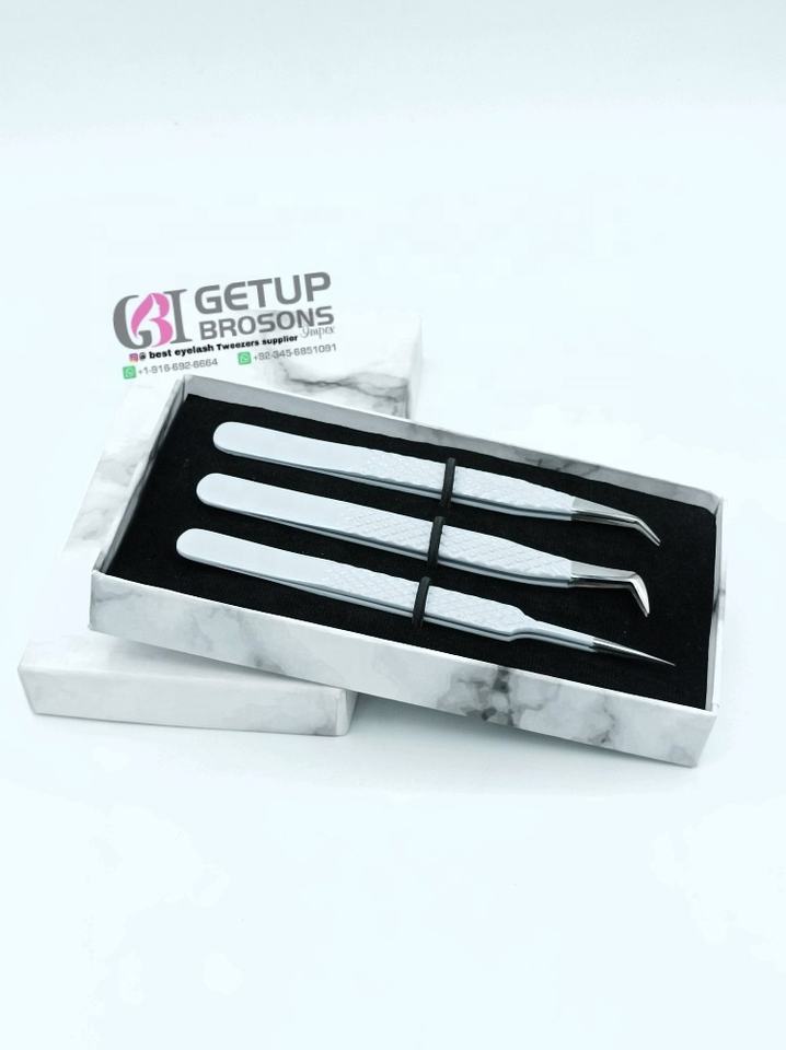 Pinzas para Pestañas de Acero Inoxidable con Recubrimiento de Polvo Blanco, Antiestáticas, con Dientes Antideslizantes, de 45 Grados, para Volumen Ruso, Nuevas y Profesionales, Venta al Por Mayor