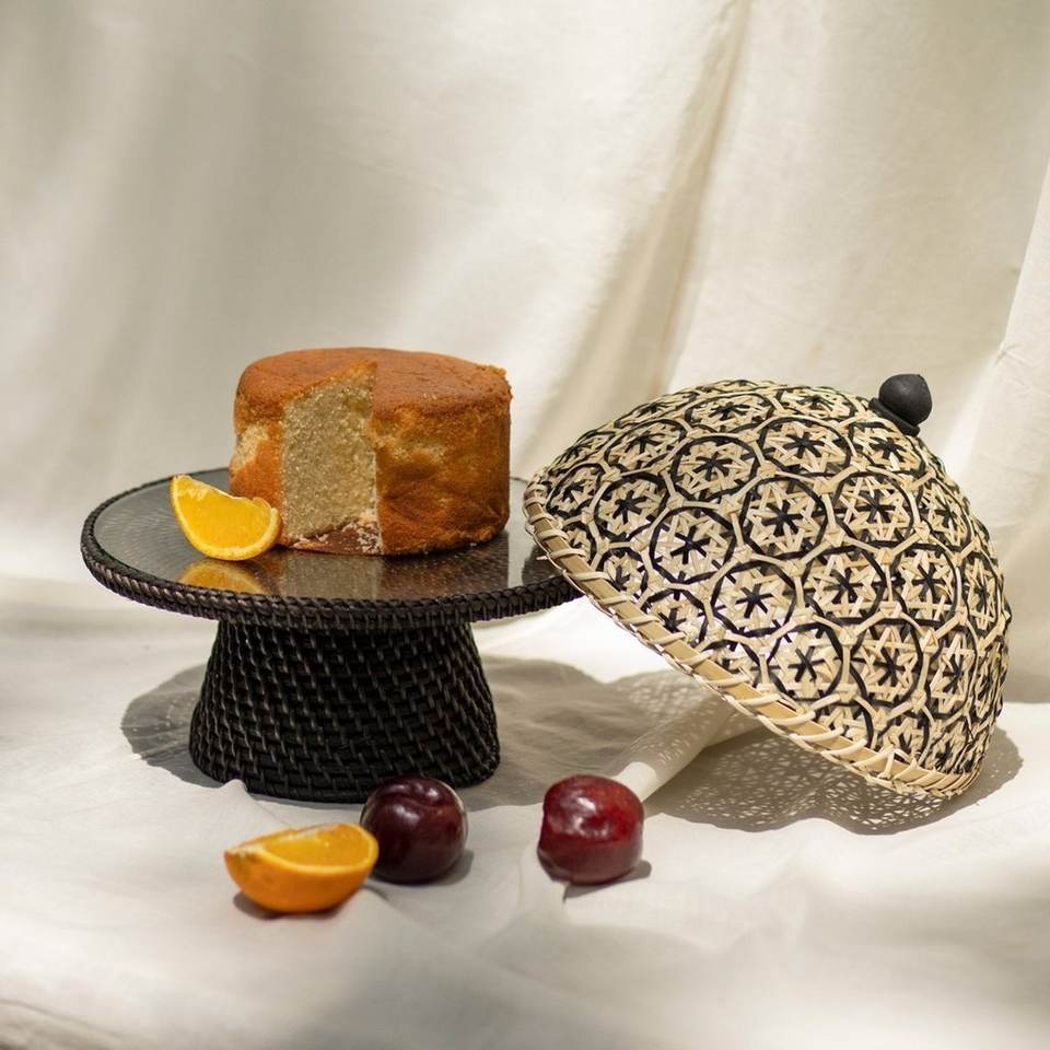 Soporte de mimbre con tapa de vidrio para pastel, cubierta tejida de bambú para chocolate y repostería, servicio de Ramadán Eid Mubarak, venta al por mayor