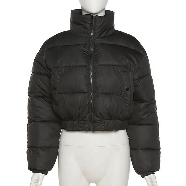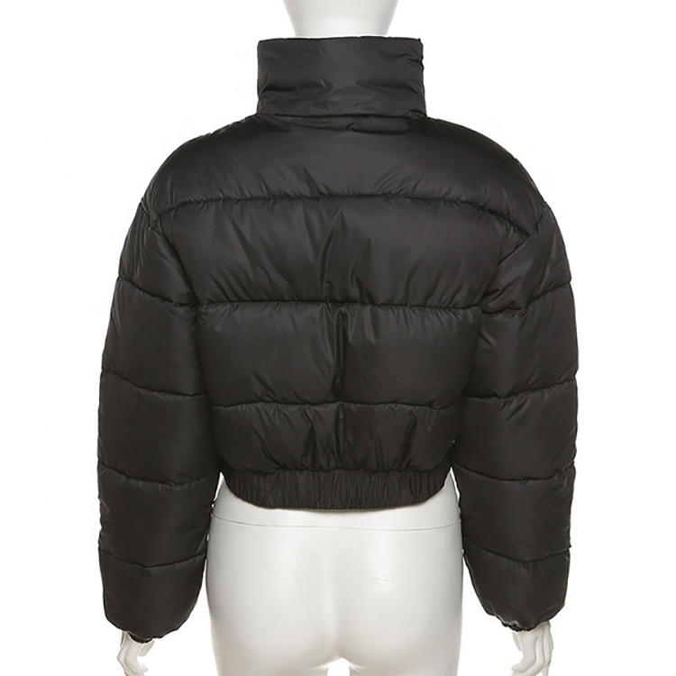 Venta al por mayor de invierno personalizado Puff Plus Size Bubble transpirable Bomber Puffer Jacket Mujeres Crop Top Ladies Big Collar Chaqueta corta