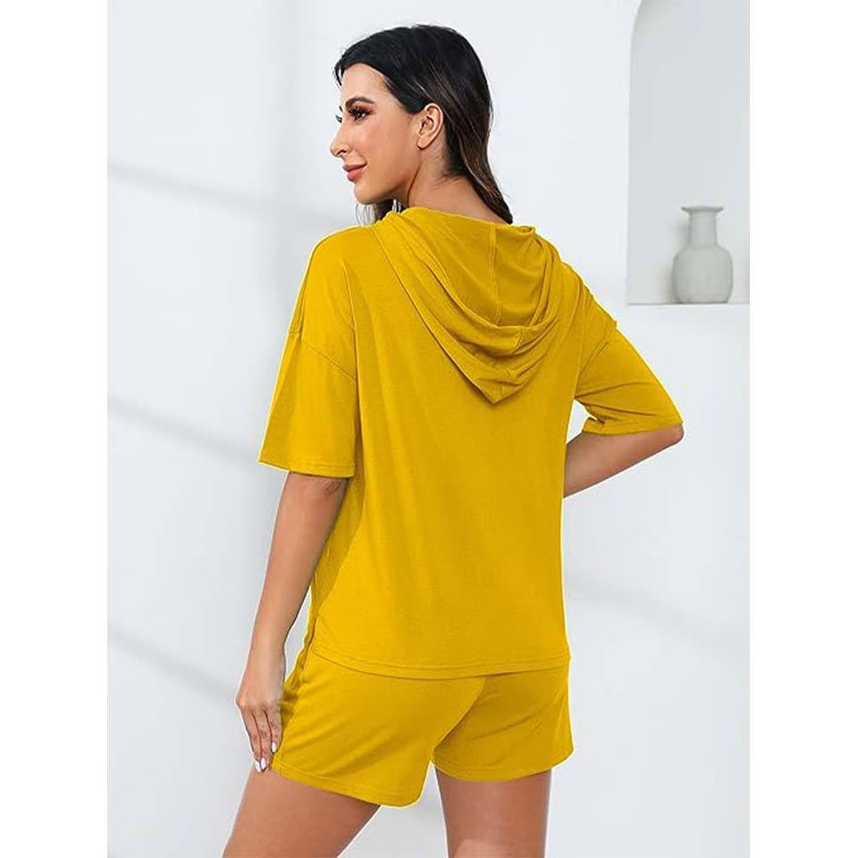 Nombre del producto:Mujeres Sudadera con capucha de dos piezas conjunto corto