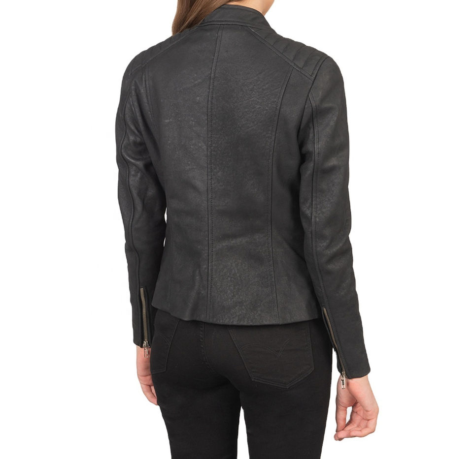 Chaqueta de Cuero PU para Mujer al por Mayor con Logotipo Personalizado, Chaqueta de Motociclista con Cremallera de Manga Larga para Otoño e Invierno
