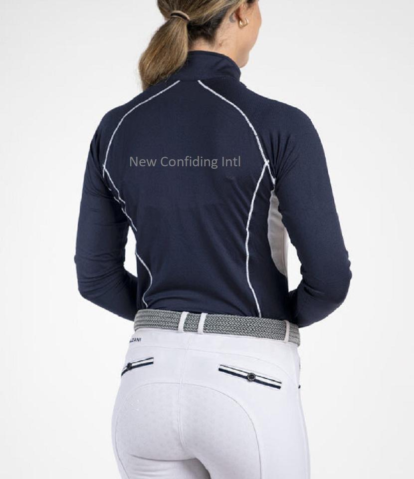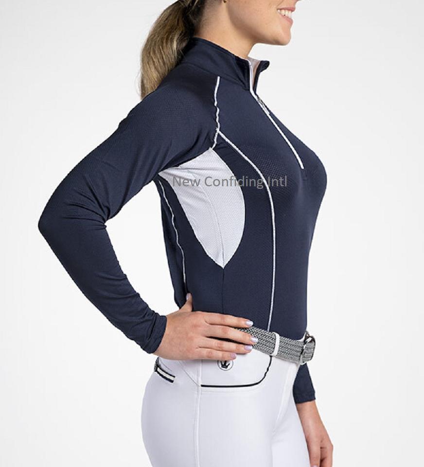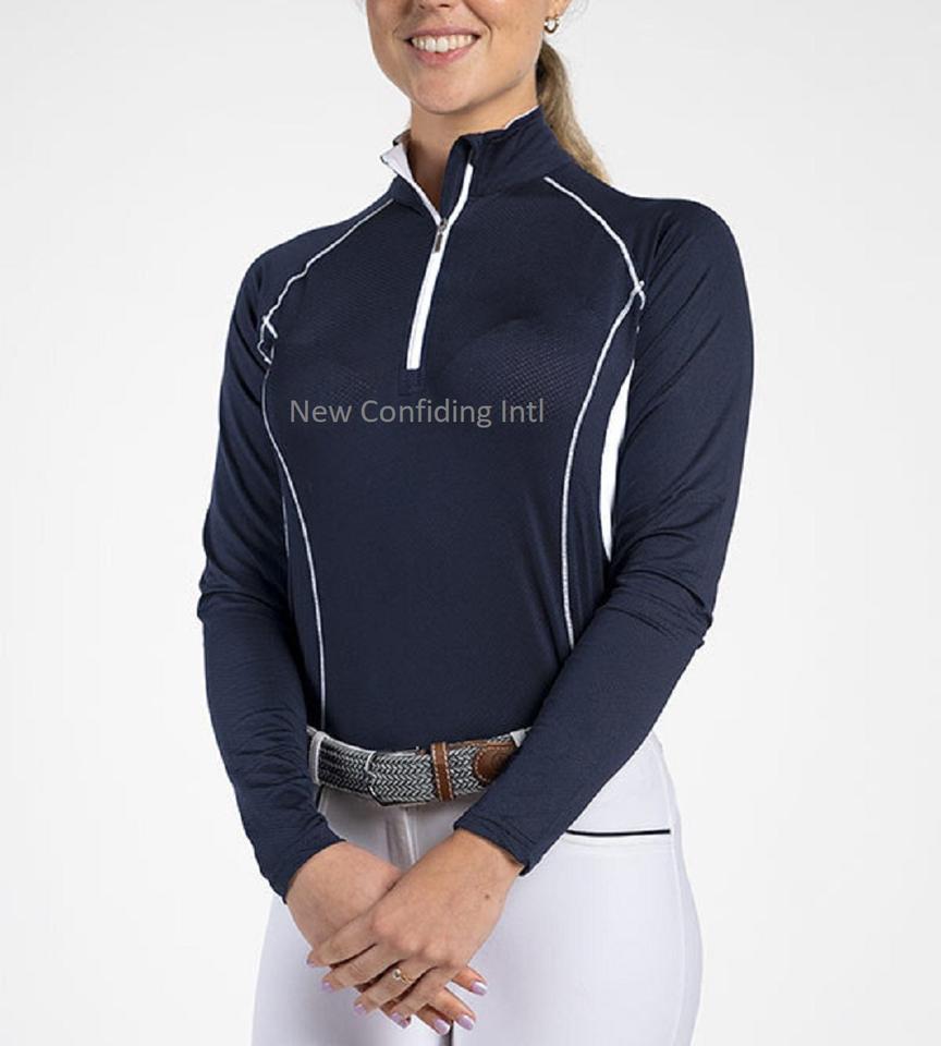 Tops de carreras con logotipo personalizado para mujer, fabricantes de ropa ecuestre, montar a caballo, media cremallera, mangas largas, capa Base, venta al por mayor